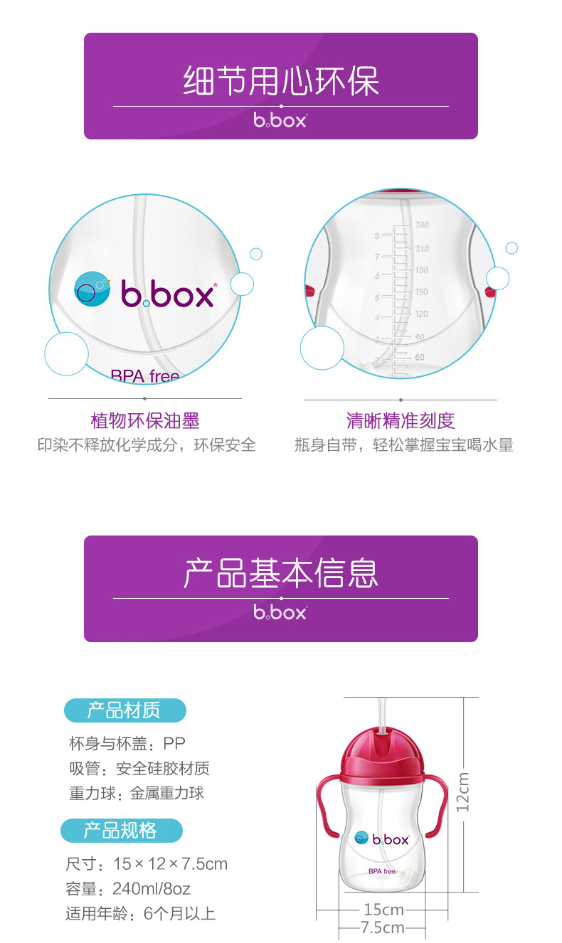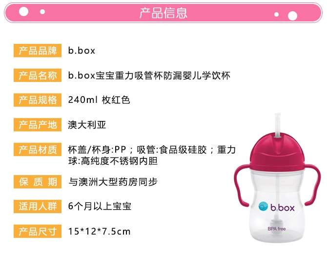• 商品名称:B.BOX 重力饮水杯枚红色 240ml
