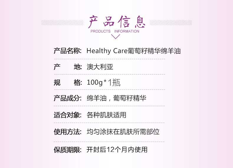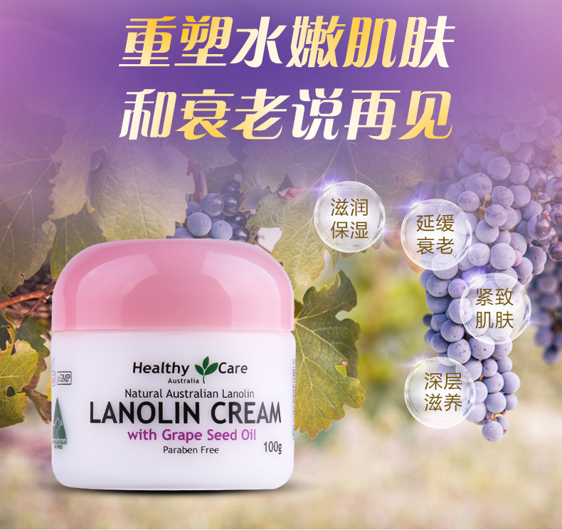 • 商品名称:葡萄籽绵羊油 Healthy care Lanolin Cream 100g