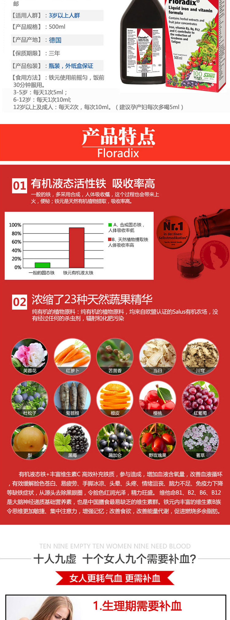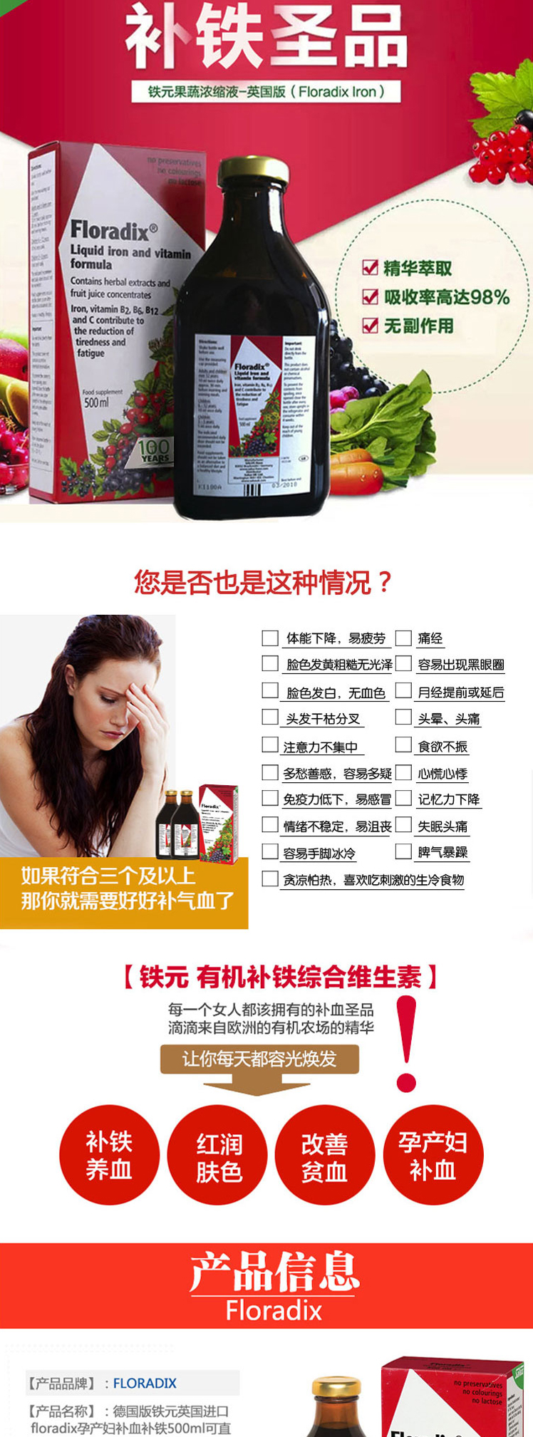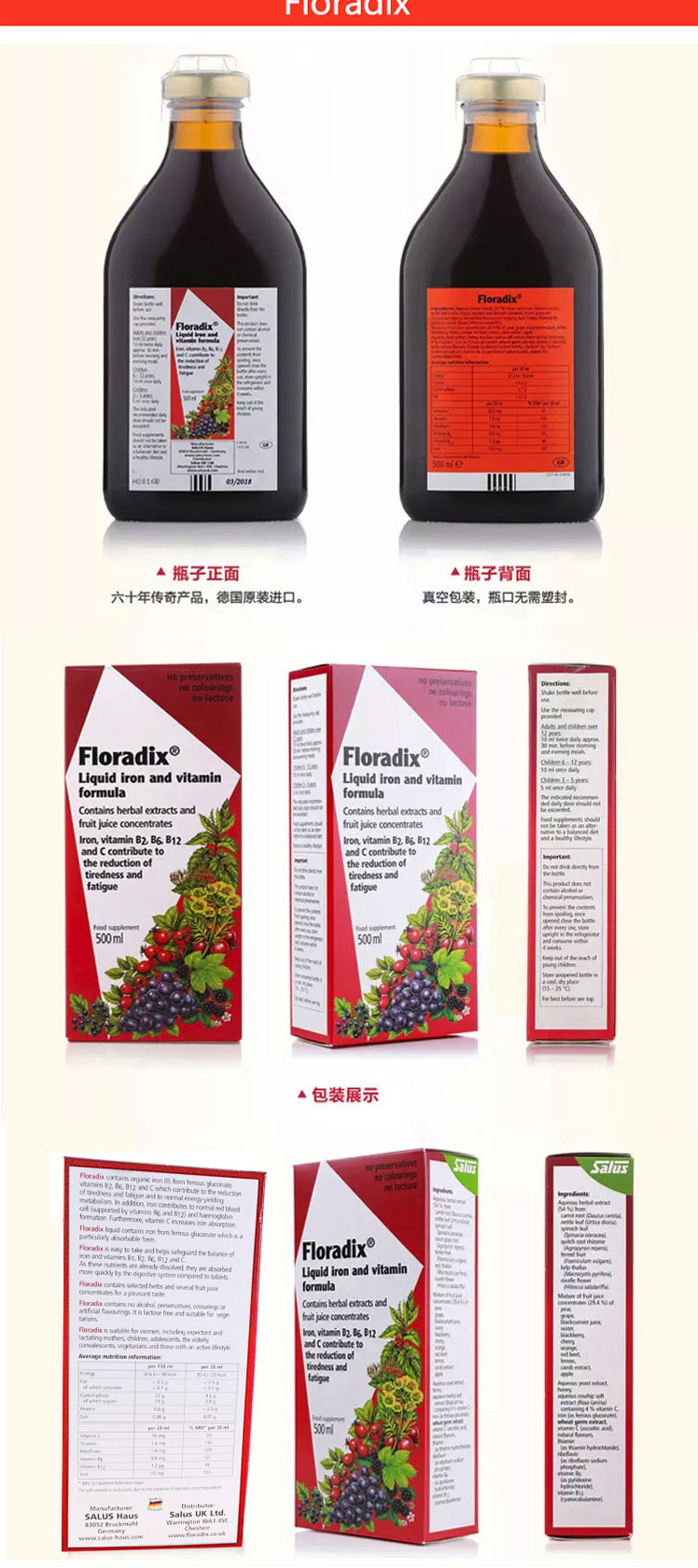 • 商品名称:Floradix Iron Extract 500ml 铁元液 运费含气柱