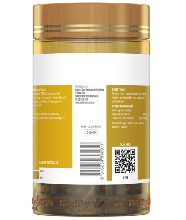 • 商品名称:Healthy care 黑蜂胶 2000mg 200粒 Propolis 2000mg 200c