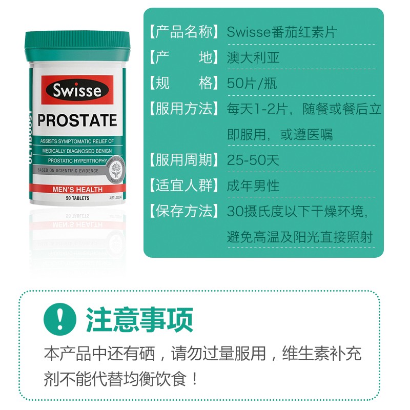 • 商品名称:Swisse 男士前列康番茄红素 50粒/瓶 Swisse Prostate 50c