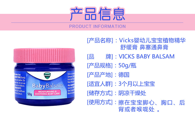 • 商品名称:VICKS 婴幼儿感冒舒缓通鼻膏50g