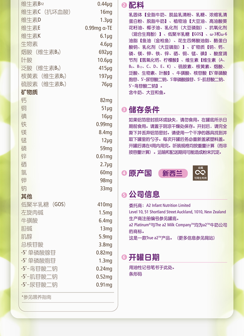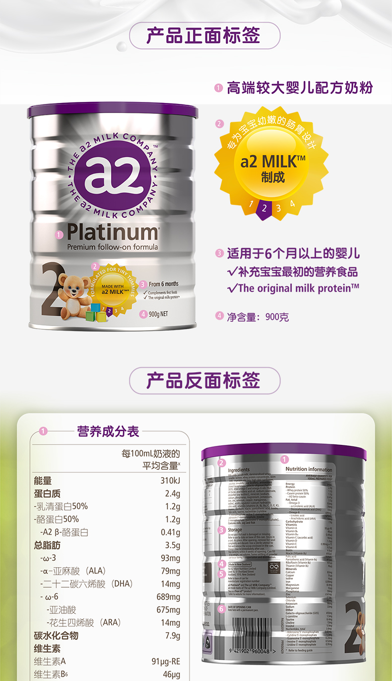 • 商品名称:A2 Follow On Formula Stage 2 900g A2婴儿奶粉二段 A2