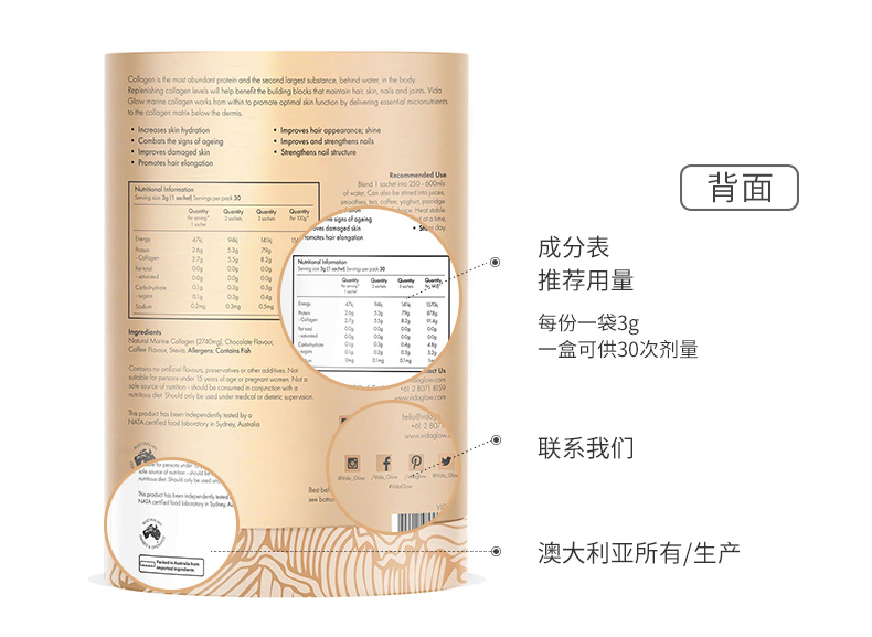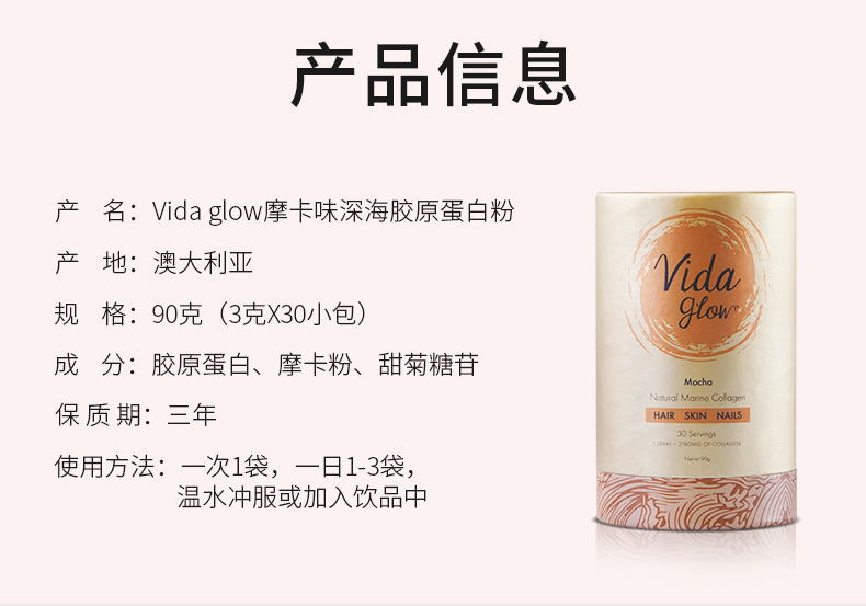 • 商品名称:Vida glow 胶原蛋白粉摩卡味 Mocha