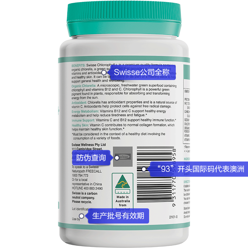 • 商品名称:SW叶绿素片 Swisse Chlorophyll 100c