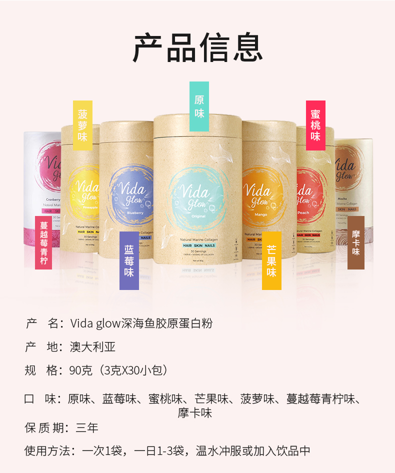 • 商品名称:vida glow 深海胶原蛋白粉原味 3g*30袋
